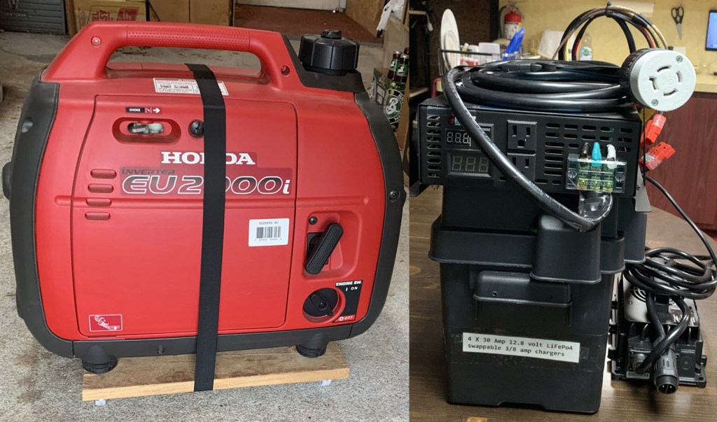 Generator, wheels, inverter, battery pack, 1000 watt charger