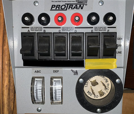 I do however have a number of 3KW inverters. One of them with a 1600 watt hour battery pack can feed the power transfer panel.